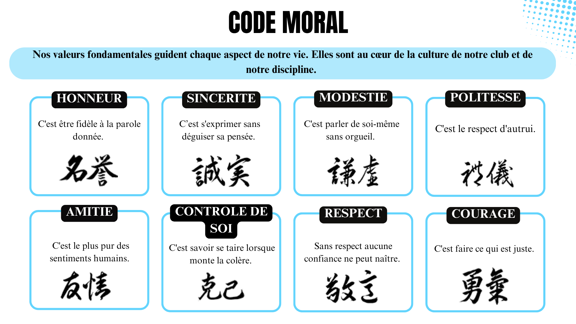 Chaque adhérent s’engage à respecter les enseignants, les autres pratiquants, les installations, le matériel, ainsi que l’esprit du judo et du jujitsu.