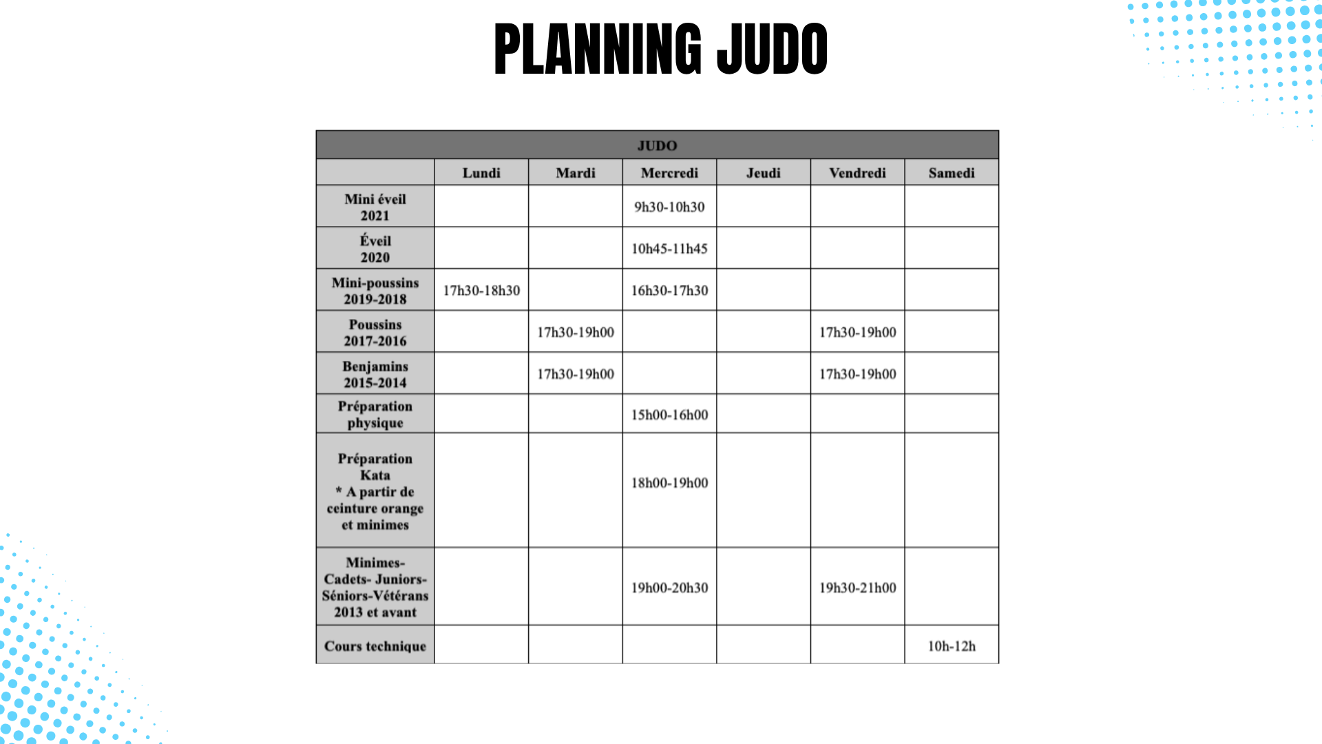Pour les inscriptions définitives et les règlements, des permanences seront assurées au dojo aux dates suivantes :
