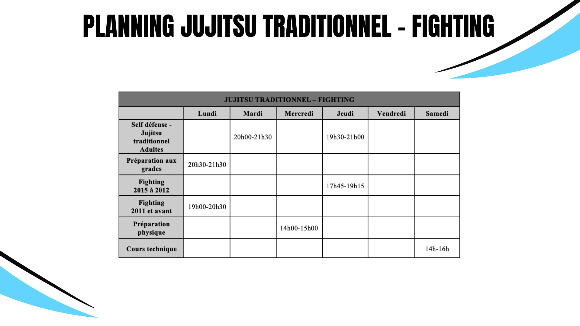 Les pratiquants doivent arriver au moins 10 minutes avant leurs cours afin de pouvoir se changer dans les vestiaires et ainsi commencer le cours à l’heure.